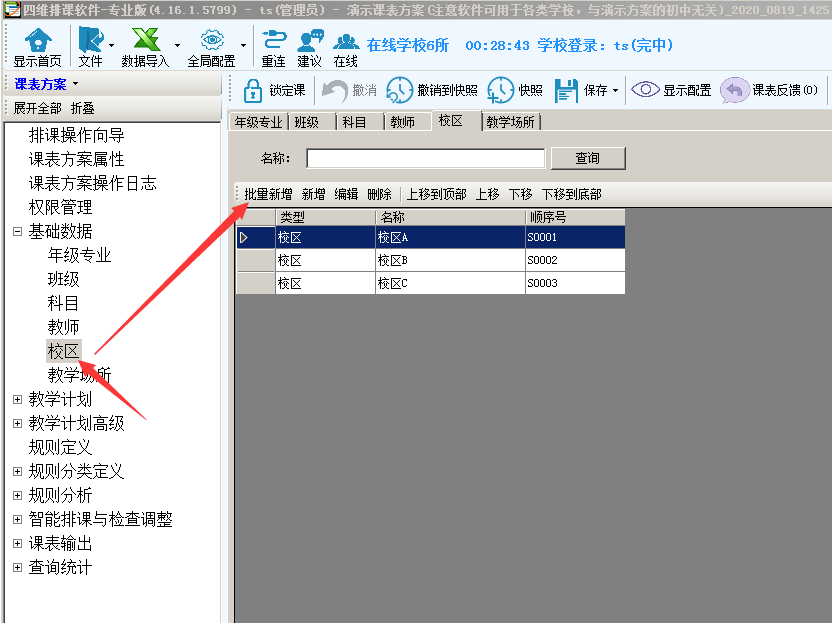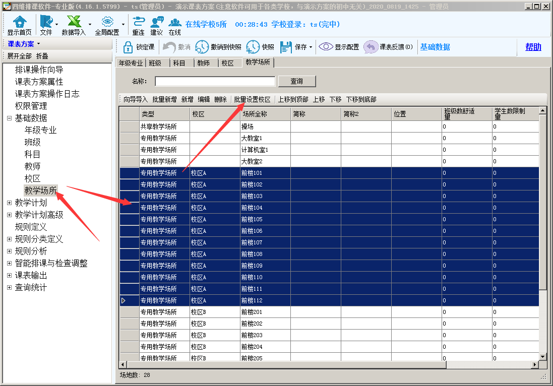 确定授课校区的方式有指定授课场地(场地有所属校区属性)、指定班级固定场地(如果一个课未指定场地则使用班级固定场地):